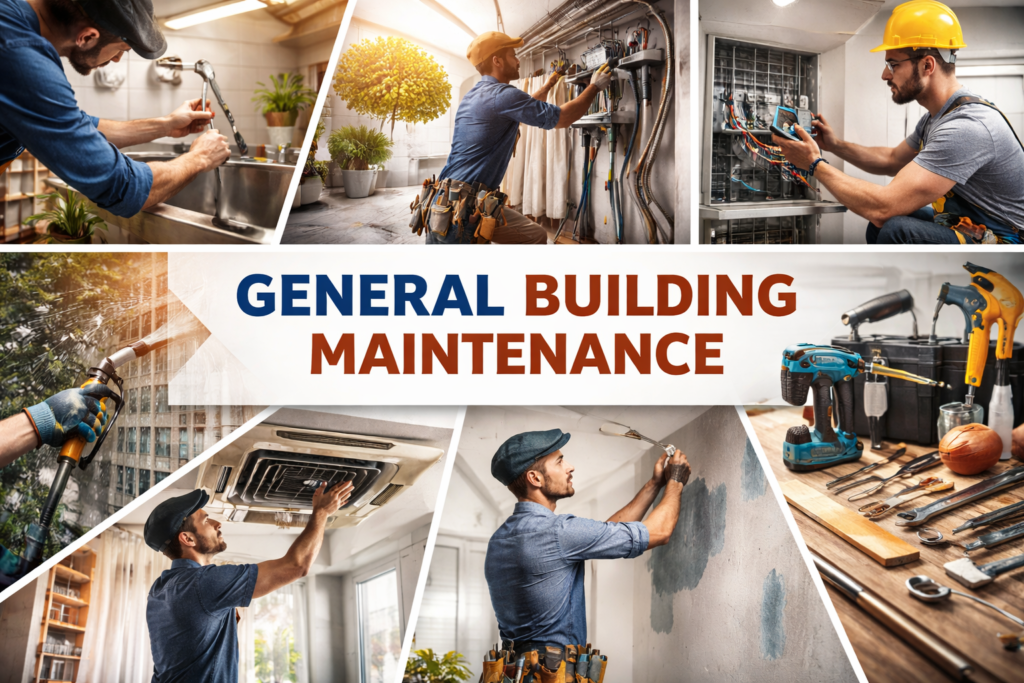 We provide complete building maintenance and specialized services to ensure that your property remains fully functional, safe, and visually appealing. Our experienced team handles every aspect of maintenance, from routine inspections and general upkeep to specialized repairs and improvements. Whether it’s electrical systems, plumbing, or air conditioning, we ensure that all installations and repairs are performed efficiently, safely, and to the highest standards. Our carpentry and joinery services enhance the functionality and aesthetics of your interiors, while our painting and finishing work adds a professional and lasting touch to every space. By integrating all these services, we offer a seamless, hassle-free experience, maintaining the comfort, safety, and appearance of your building while saving you time and effort.